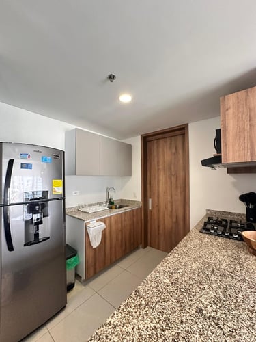 2 alcoba, 1 baño, sala, cocina y balcón con vista a la ciudad.