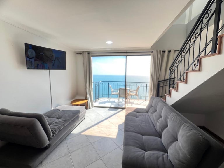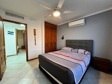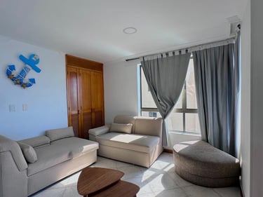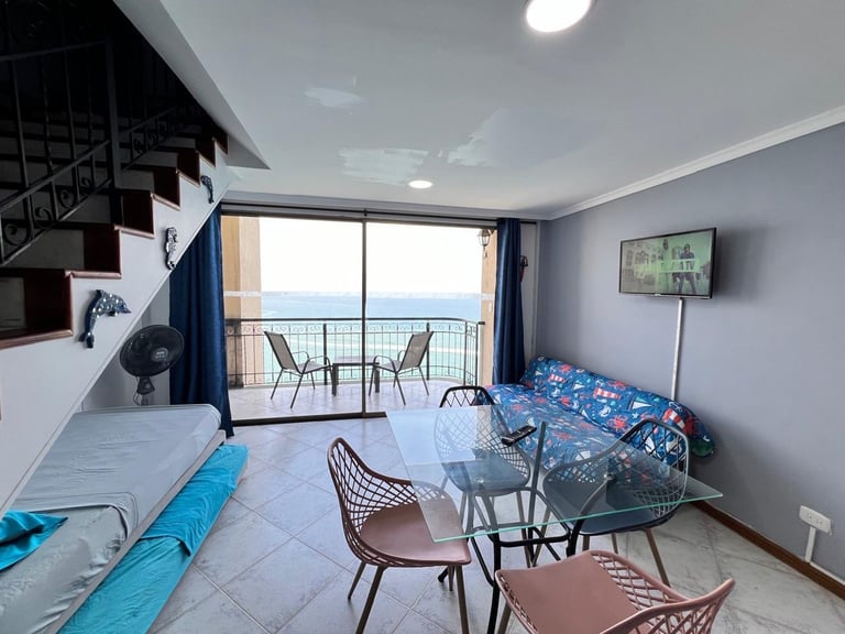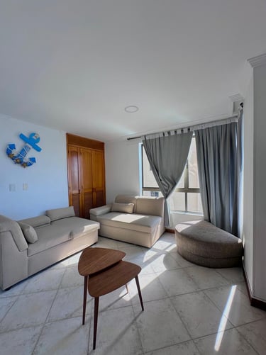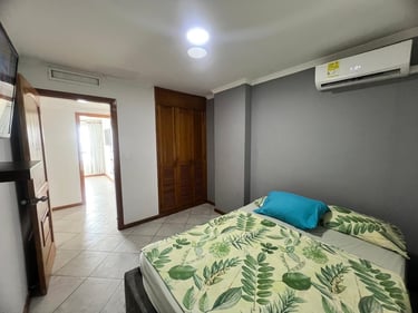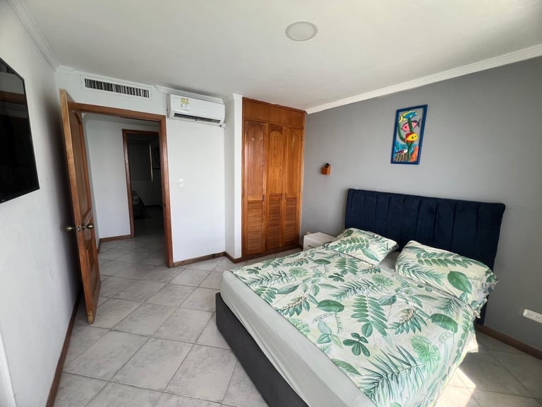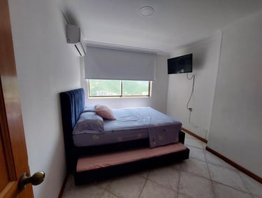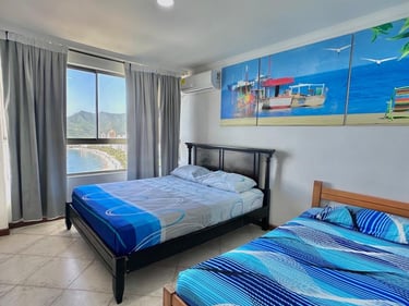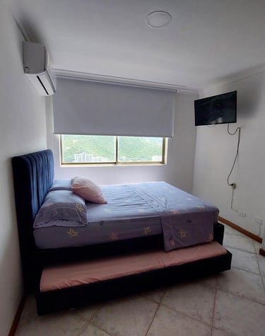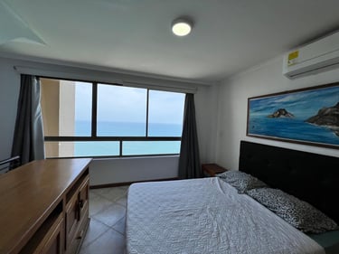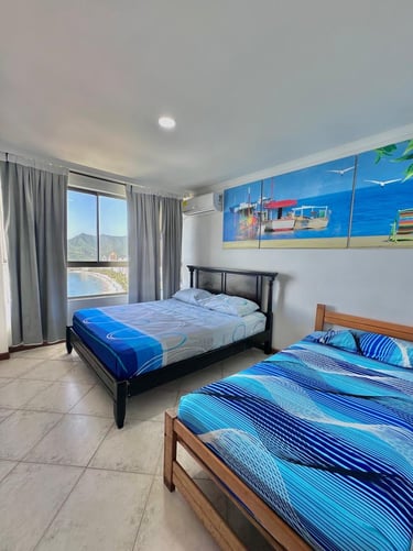 1 alcobas, 2 baños, sala, cama nido, comedor, cocina y balcón con vista al mar.