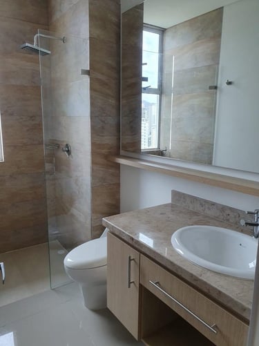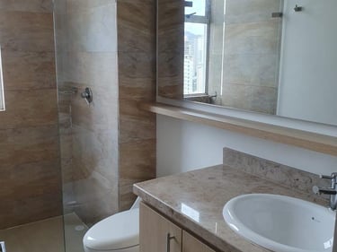 2 alcobas, 3 baños, sala, comedor, cocina y balcón con vista a la ciudad.