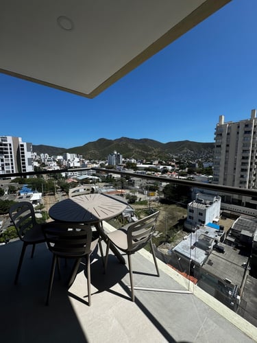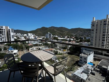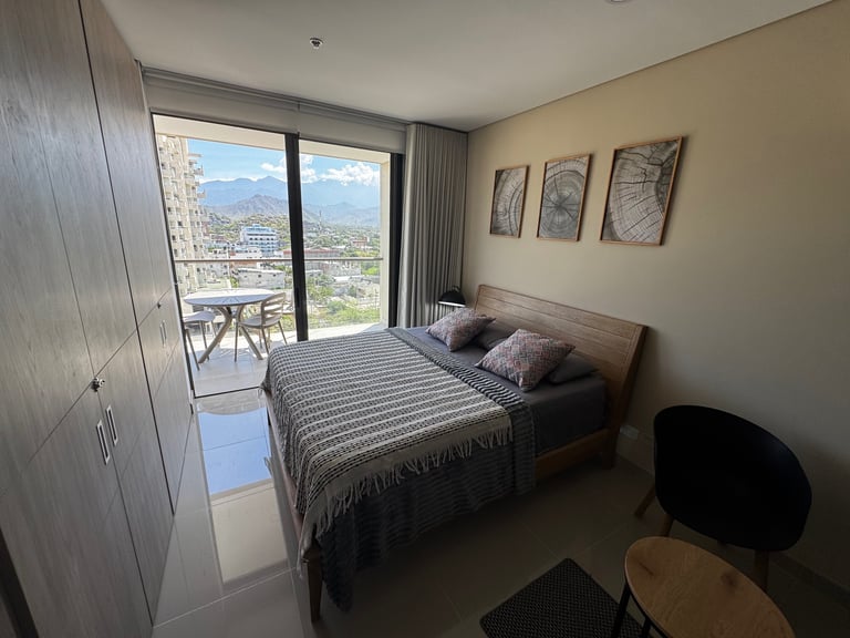 1 alcoba, 1 baño, comedor, cocina y balcón con vista a la ciudad.
